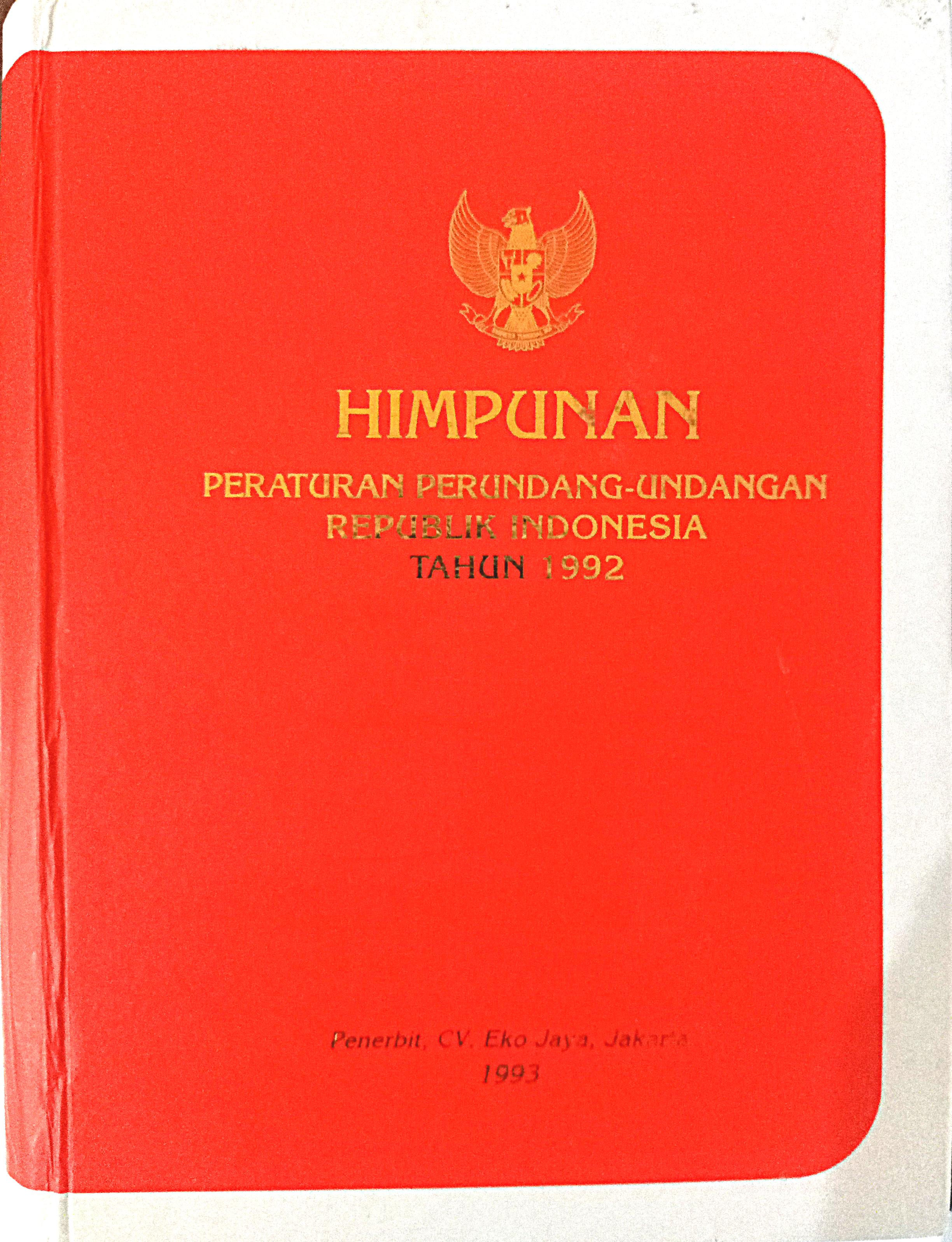 Buku himpunan ini memuat peraturan-peraturan yang dikeluarkan dari bulan Januari - Desember 1992, yang mana jumlah peraturan sebanyak 179 buah yang terdiri : 25 ( dua puluh lima ) Undang-undang, 1 (satu) Peraturan Pemerintah Pengganti Undang-Undang, 80 ( delapan puluh ) Peraturan Pemerintah, 68 ( enam puluh delapan ) Keputusan Presiden dan 5 ( lima ) Intruksi Presiden