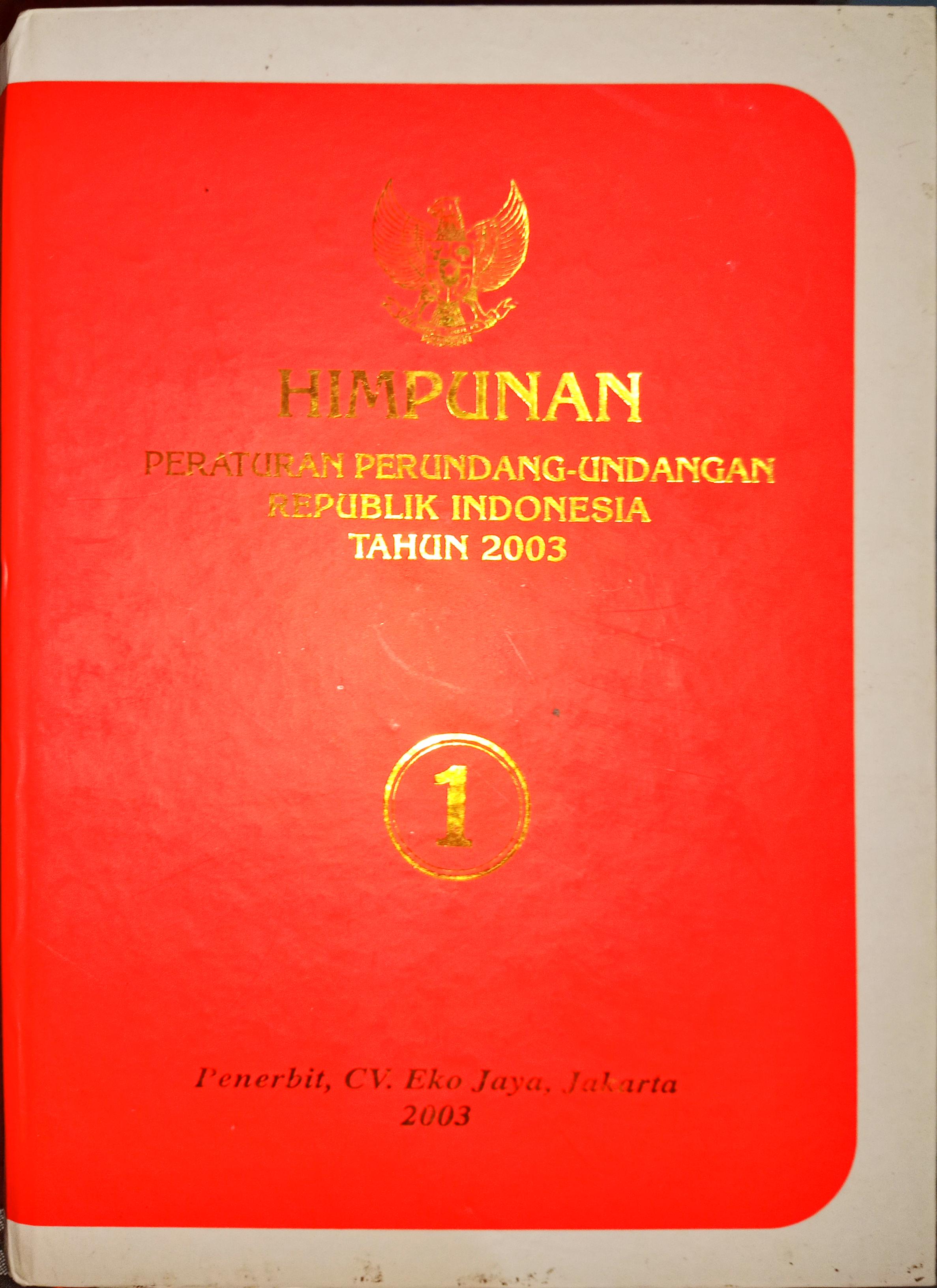 Buku Himpunan Peraturan Perundang-Undangan Volume 1 (satu) yang dikeluarkan dari bulan Januari - Juni 2003 , yang mana jumlah peraturan sebanyak 99 (sembilan puluh sembilan) buah yang terdiri : 19 ( sembilan belas ) Undang-undang, 31 (tiga puluh satu ) Peraturan Pemerintah, 45( empat lima ) Keputusan Presiden dan 4 ( empat ) Intruksi Presiden
