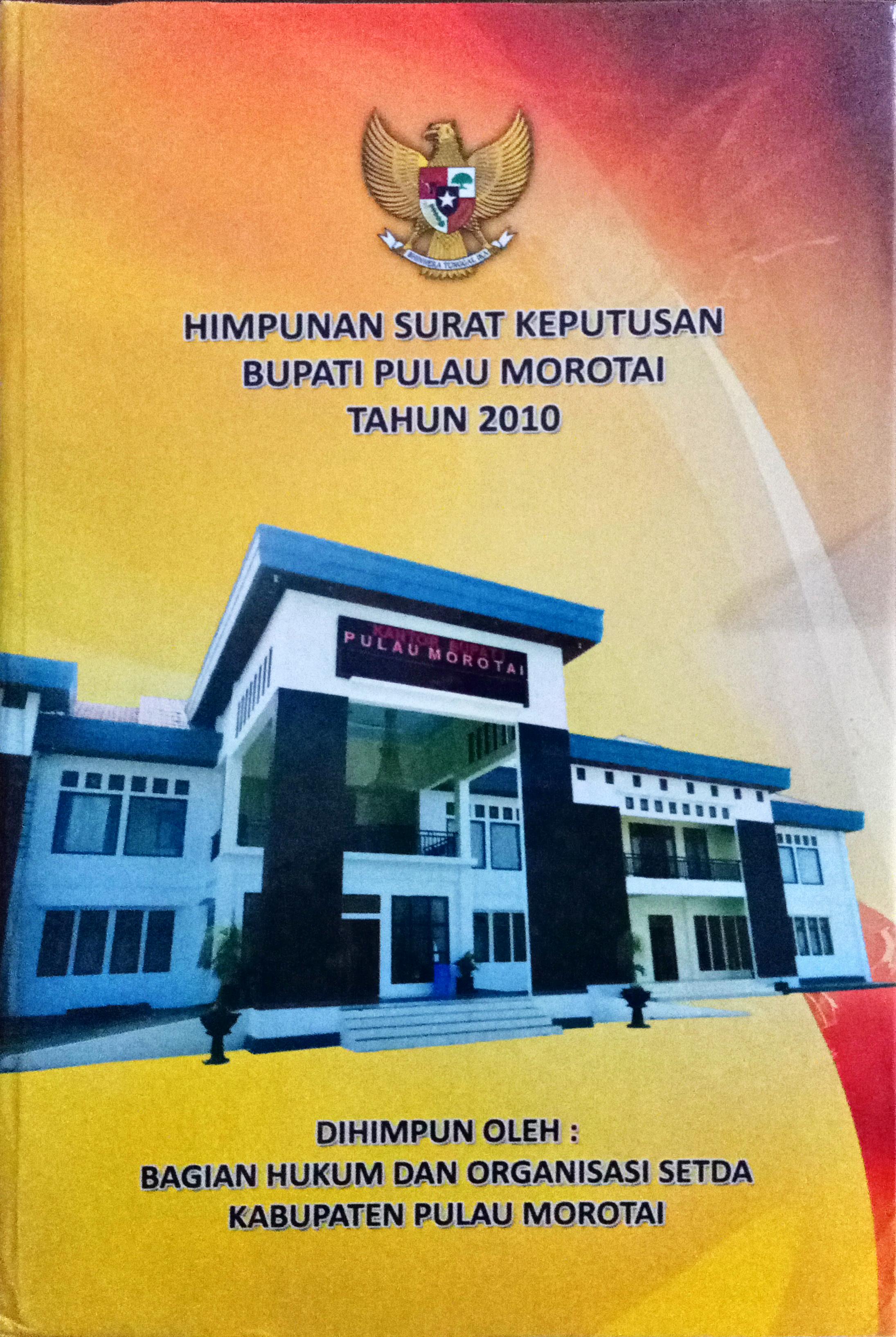 Buku Himpunan ini merupakan Himpunan Surat Keputusan Bupati Pulau Morotai yang dikeluarkan atau dibuat dari bulan Januari sampai dengan bulan Desember Tahun 2010 yang mana dihimpun oleh Bagian Hukum dan Organisasi Sekretariat Daerah Kabupaten Pulau Morotai