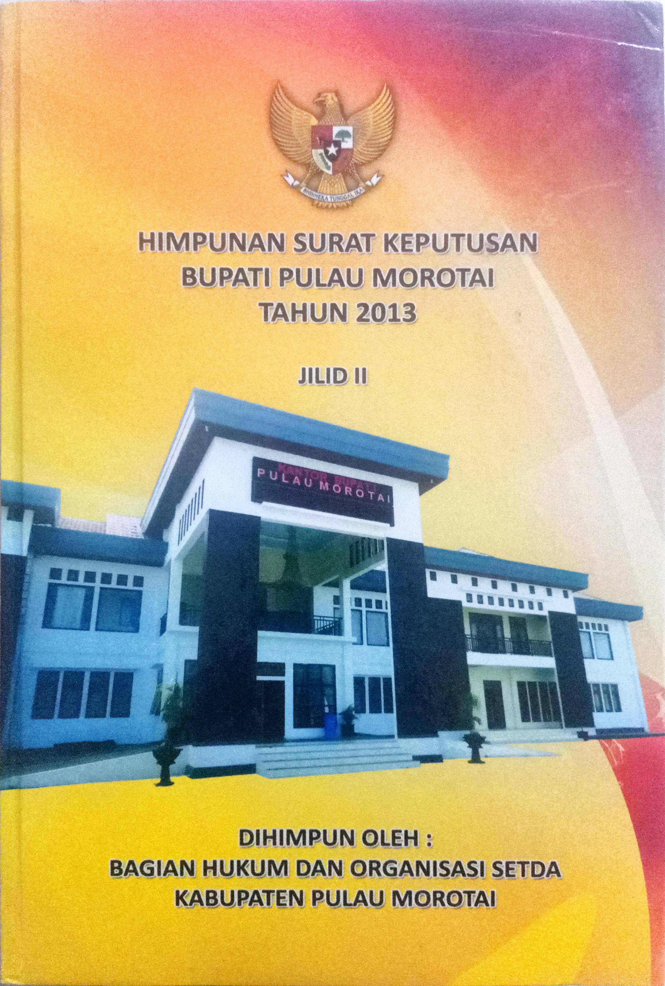 Buku Himpunan ini merupakan Himpunan Surat Keputusan Bupati Pulau Morotai jilid II (Kedua) yang dikeluarkan atau dibuat di Tahun 2013 dari bulan Juni sampai bulan Desember yang mana dihimpun oleh Bagian Hukum dan Organisasi Sekretariat Daerah Kabupaten Pulau Morotai