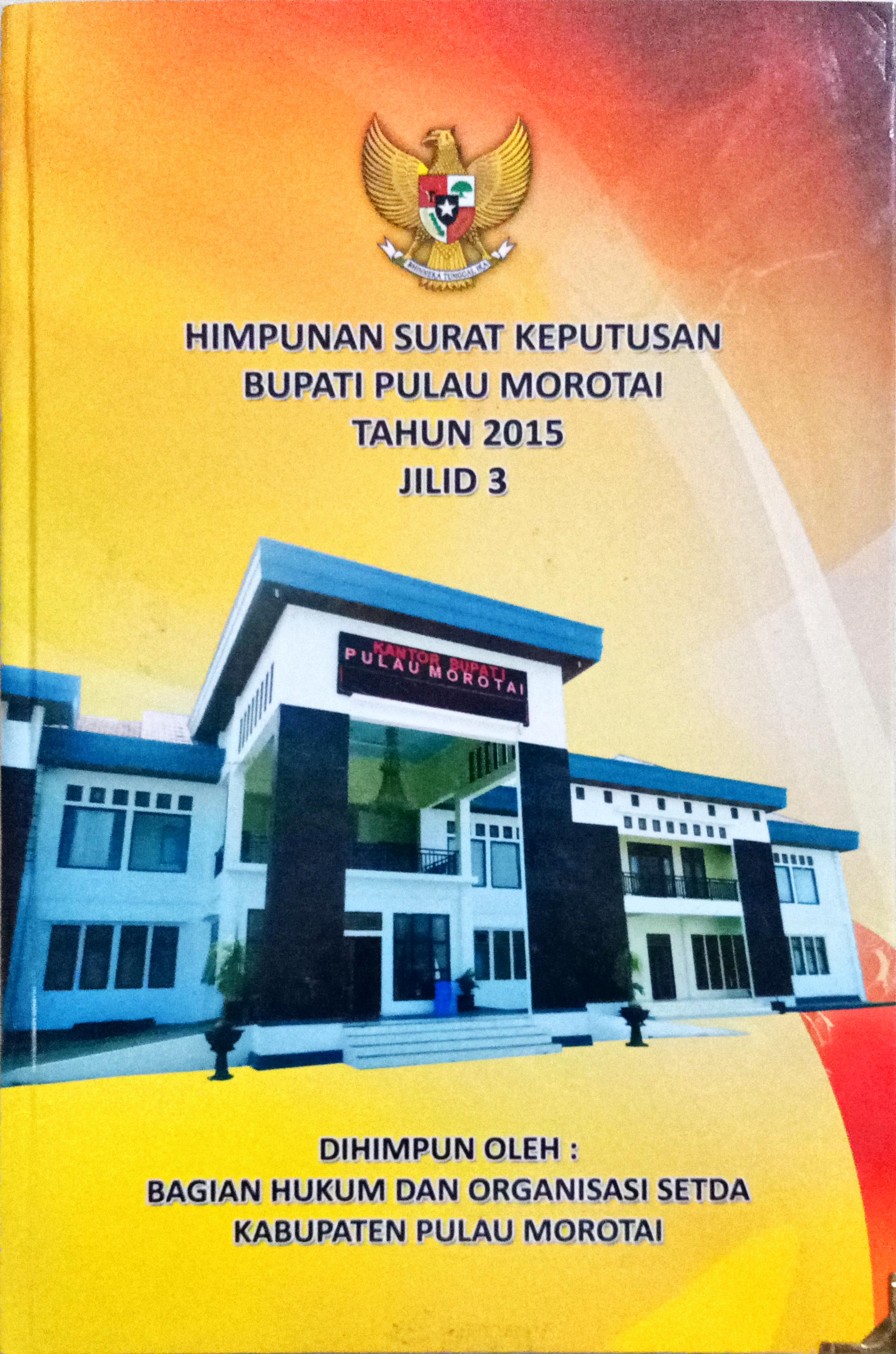 Buku Himpunan ini merupakan Himpunan Surat Keputusan Bupati Pulau Morotai jilid III (Ketiga) yang dikeluarkan atau dibuat dari bulan Februari sampai dengan bulan April Tahun 2015 yang mana dihimpun oleh Bagian Hukum dan Organisasi Sekretariat Daerah Kabupaten Pulau Morotai